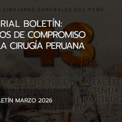 BOLETÍN ELECTRÓNICOISSN 1817 – 446Año 22 No. 3 Marzo 2026Comité de PublicaciónEditor: Dr. David Ortega Checa 43 AÑOS DE COMPROMISO CON LA CIRUGÍA PERUANA El 11 de marzo marca una fecha de especial significado para la comunidad quirúrgica del país: el 43.º aniversario de la Sociedad de Cirujanos Generales del Perú, una institución que, a Read more about BOLETÍN MARZO 2026[…]